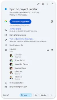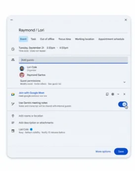 Estamos facilitando ainda mais a tarefa de fazer com que o Gemini faça anotações para você. Os organizadores de eventos agora podem ativar a opção “Faça anotações para mim” ao agendar o evento ou preparar a reunião no Calendário.