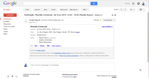 - Ao clicar para ação de responder ou encaminhar e-mail do Gamail, uma nova caixa de e-mail abrirá