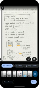 Ao digitalizar documentos com o Google Drive no seu dispositivo móvel , você pode recortar ou girar o arquivo, ajustar a cor aplicando filtros, apagar sombras e muito mais. Esta semana, temos o prazer de apresentar atualizações nas opções de ajuste para proporcionar uma experiência de usuário aprimorada e fluida ao editar documentos digitalizados. Por exemplo, você notará: