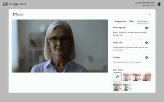 No ambiente de trabalho híbrido atual, pode ser difícil se destacar nas reuniões. Por isso, introduzimos novos recursos com tecnologia de IA no Google Meet para manter sua melhor aparência, seja participando do seu laptop ou da sala de conferências.