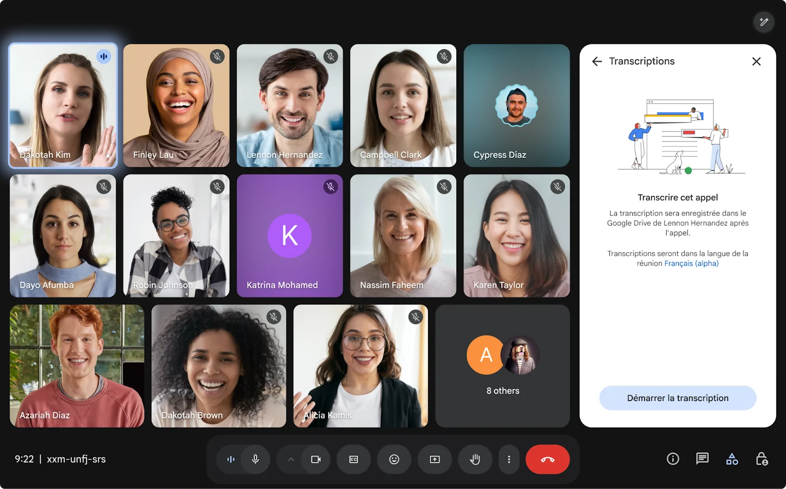 As transcrições estão disponíveis para o Google Workspace: