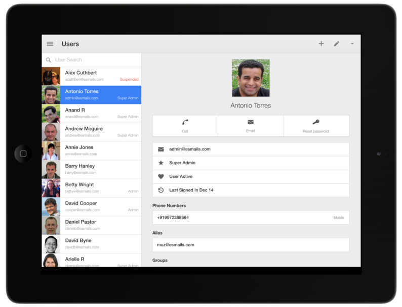 Com o aplicativo do Administrador do Painel de Controle Google para iOS para que os administradores possam cuidar de tarefas comuns em qualquer lugar diretamente de seus iPhones ou iPads.