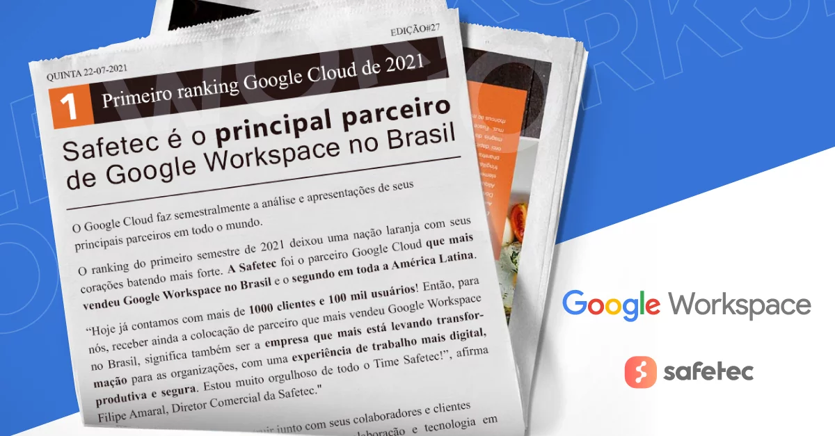 O Google Cloud tem parceiros em todo o mundo e semestralmente faz a análise dos principais representantes. Neste primeiro semestre de 2021, a Safetec foi o parceiro Google Cloud que mais vendeu Google Workspace no Brasil, ficando em primeiro lugar em vendas de Google Workspace no Brasil, e o segundo em toda a América Latina.